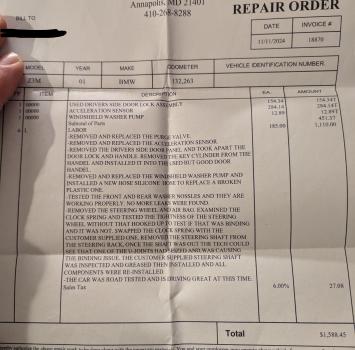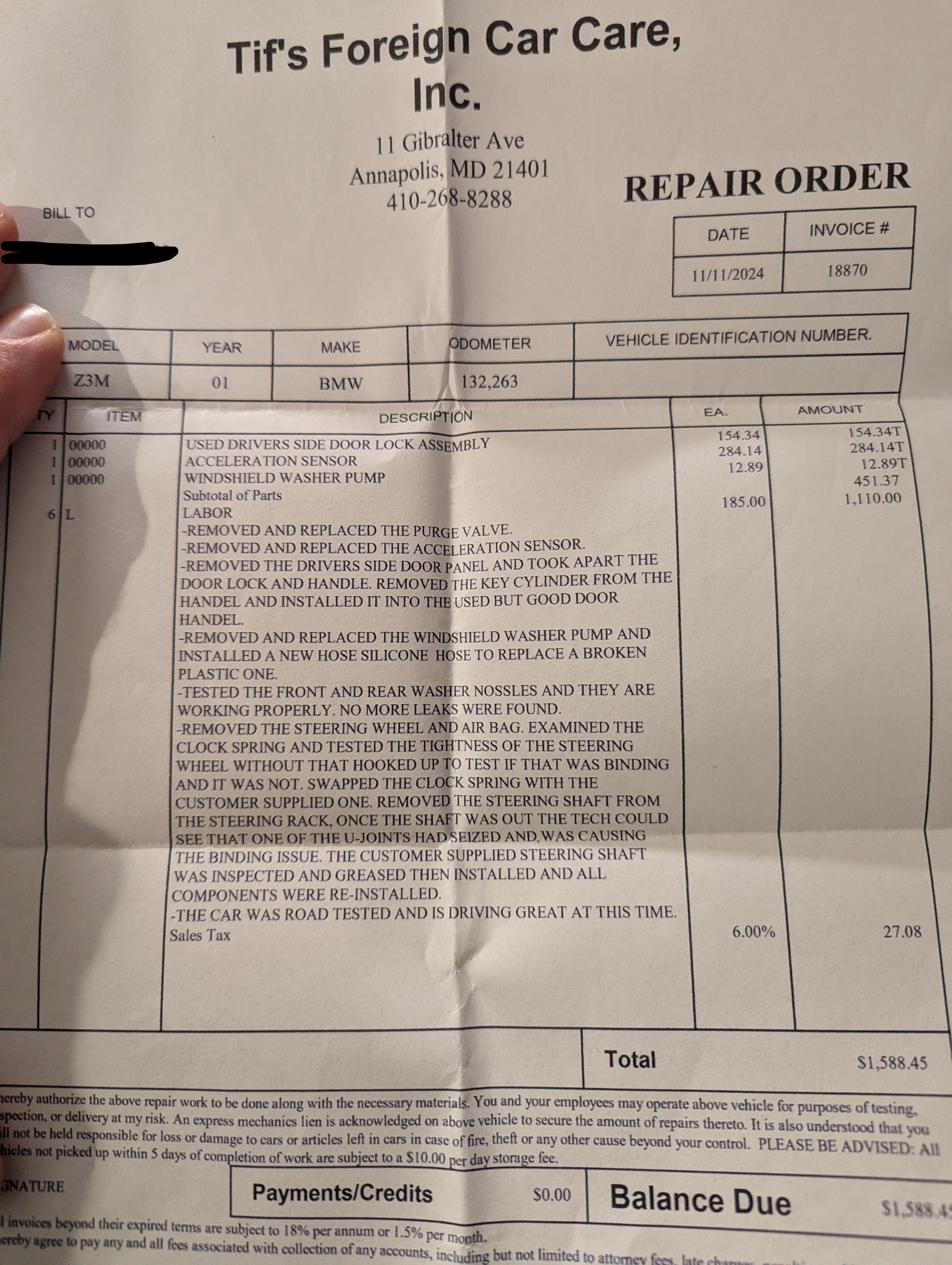 Final service for 2024. Replaced purge valve, clock spring, steering shaft, speed sensor, and driver's door handle to have working door locks.