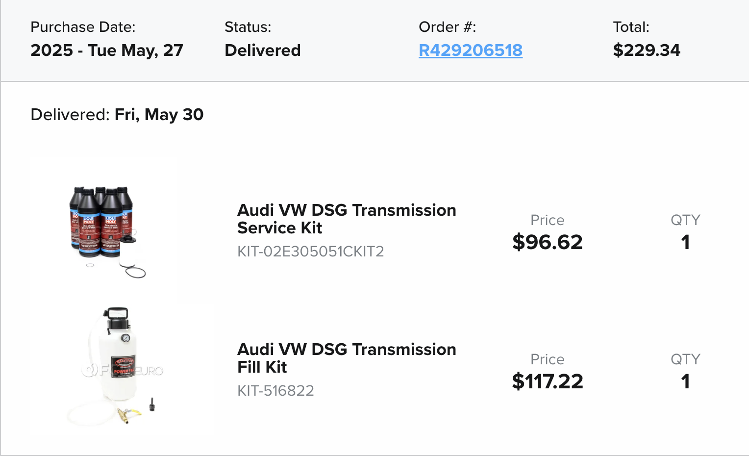 DSG fluid and filter service since previous owner neglected to do it at the 40k recommended interval.
