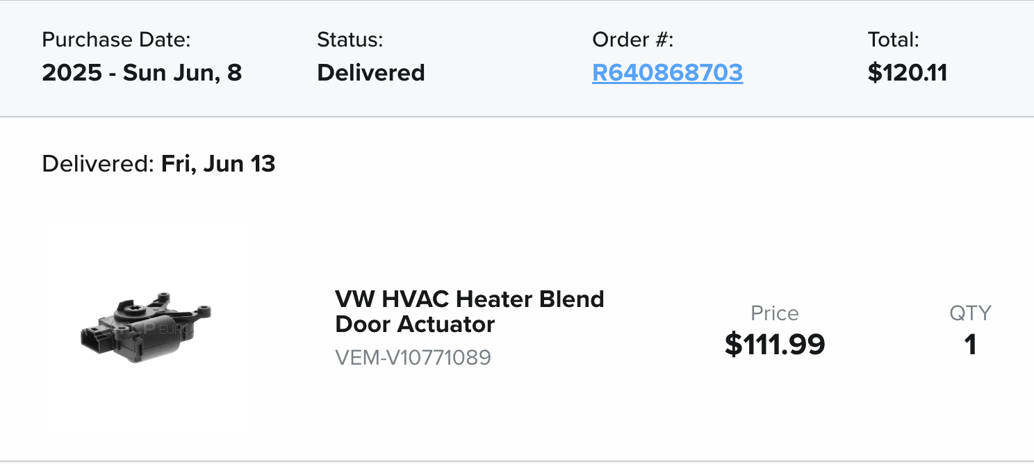 Follow up to the previous service. Ended up getting the wrong part initially, so I returned it and ordered the correct one. This actuator controls the air flowing through the center vents in the dash, and is located behind and to the right of the cluster. Very difficult to get to, but do not need to remove the cluster to get to it.