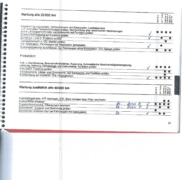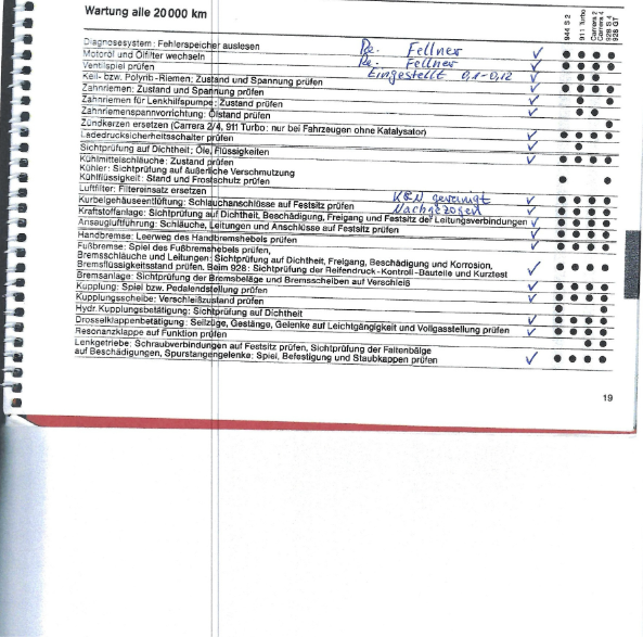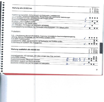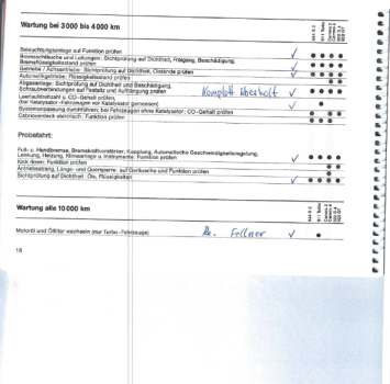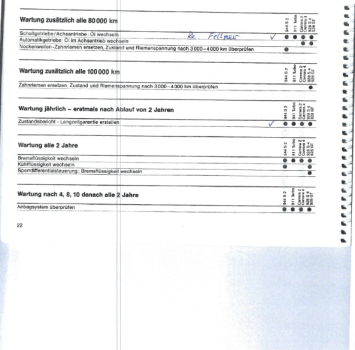 - Several stamps between major intervals confirm annual maintenance (oil change, safety check)