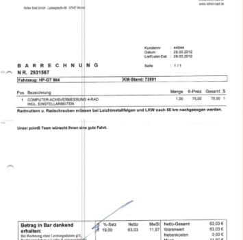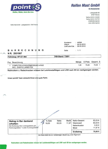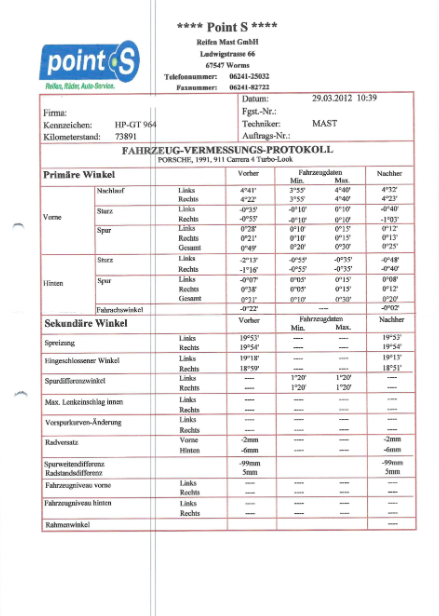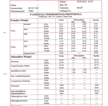 This entry documents a professional wheel alignment service, important for maintaining proper handling and tire wear.