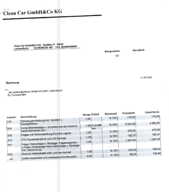 - Special TÜV inspection (pre-Oldtimer service): 182,07 €
