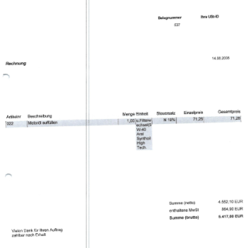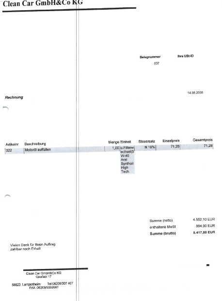 - Engine oil refill – Aral Synthoil High Tech 5W-40: 71,28 €