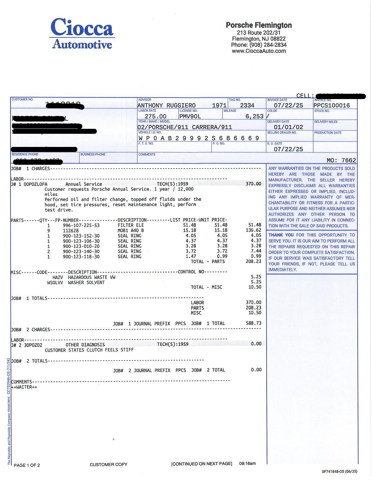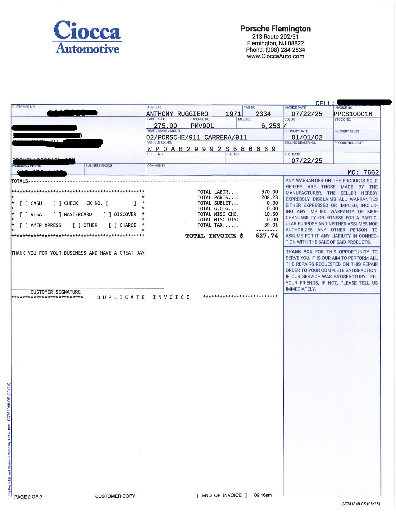 Vehicle 2002 Porsche 911 Turbo Aerokit Read more about 2002 Porsche 911 Turbo Aerokit Odometer 6,253 Maintenance Date 07/22/2025 Maintenance Summary Engine oil service Maintenance Images