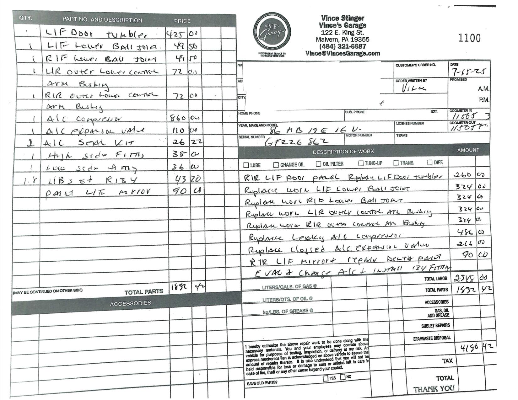 - Replaced left front (LF) door tumbler and removed LF door panel