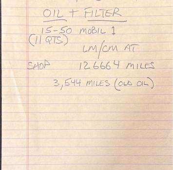 Vehicle Chiffon 911SC Read more about Chiffon 911SC Odometer 126,664 Maintenance Date 07/23/2013 Maintenance Summary Oil Change 15-50 Mobil 1 Maintenance Images