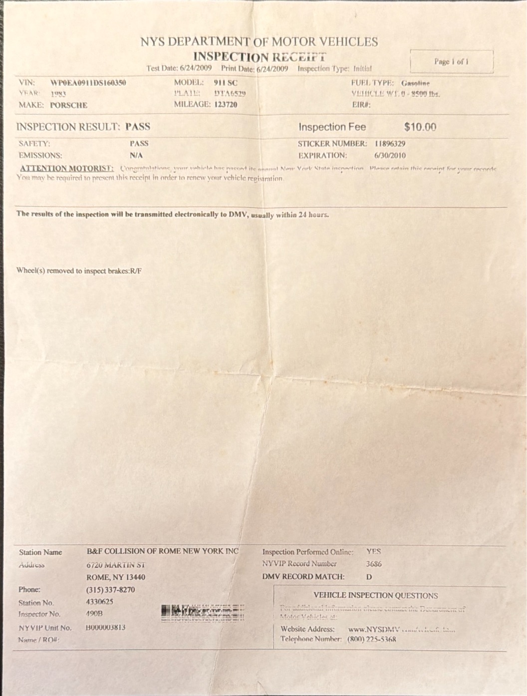Vehicle Chiffon 911SC Read more about Chiffon 911SC Odometer 123,720 Maintenance Date 06/24/2009 Maintenance Summary NYSI Maintenance Images