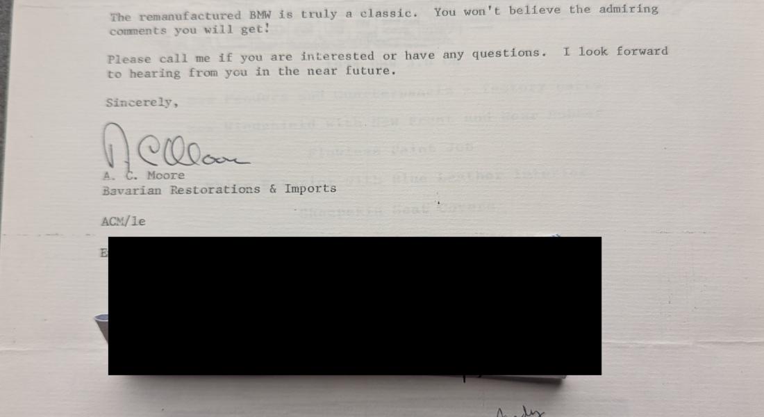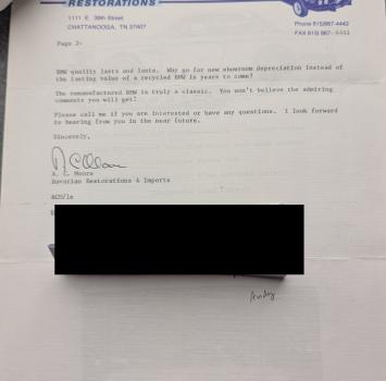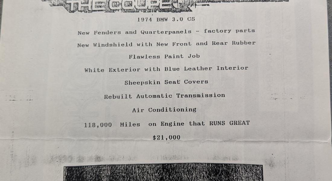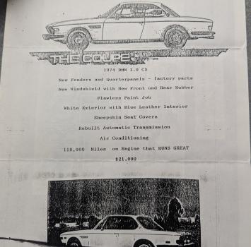 07/01/1994 Vehicle 1972 BMW 3.0 CS Coupe Odometer 0 Landing Image(s) This captures the initial communications between the owner and the body shop facility.