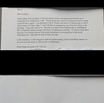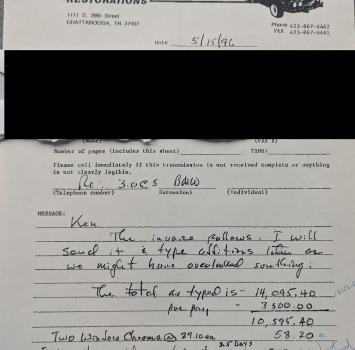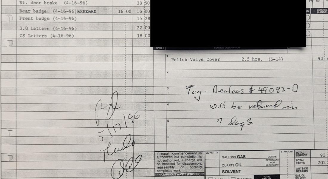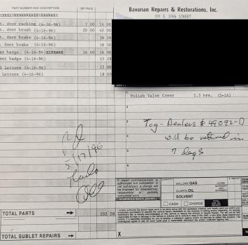 05/01/1996 Vehicle 1972 BMW 3.0 CS Coupe Odometer 0 Landing Image(s) Nearing the end of the cosmetic refresh and final communications between shop and owner.