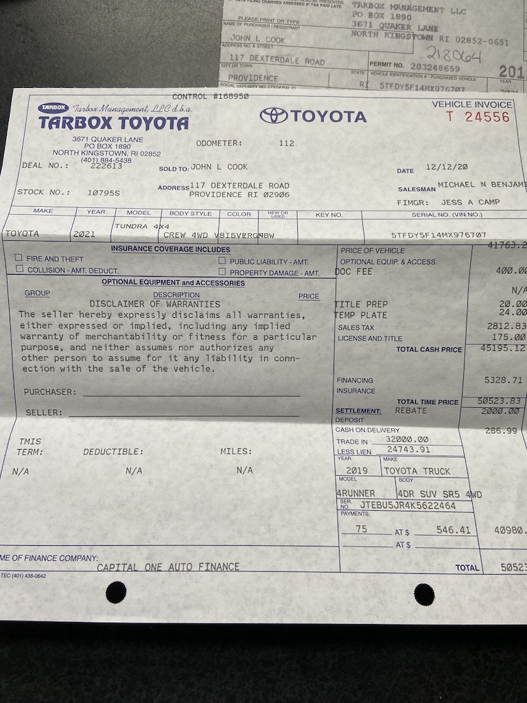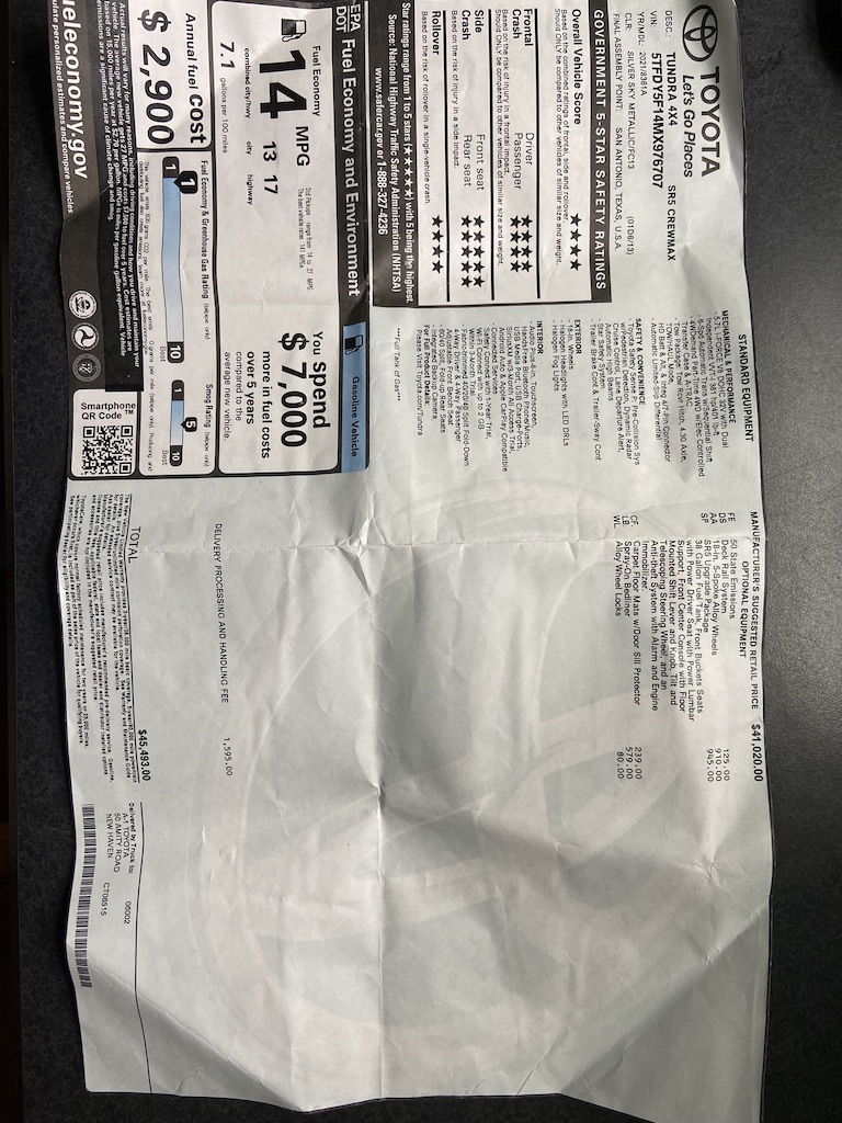 Sweet brand new Tundra, right in the middle of Covid. Needed a truck for work, and this one definitely gets it done. This is my first real truck, and I am trying to figure out how I made it through life without one...