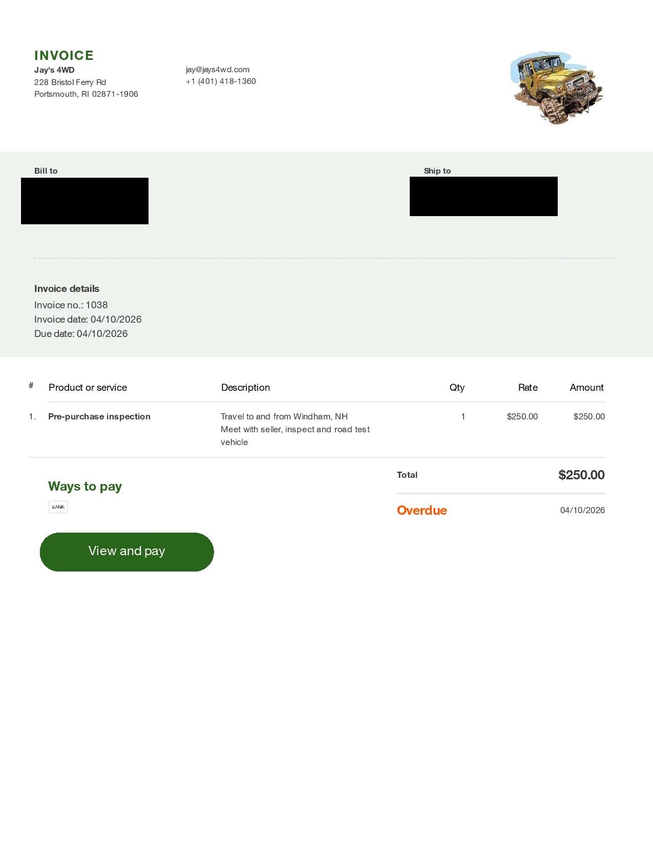 Vehicle 1994 Land Rover Discovery Date 04/15/2026 Receipt(s) Image Description Jay Gaston of Jay's 4WD laid hands on the Discovery in person before I committed to buy.