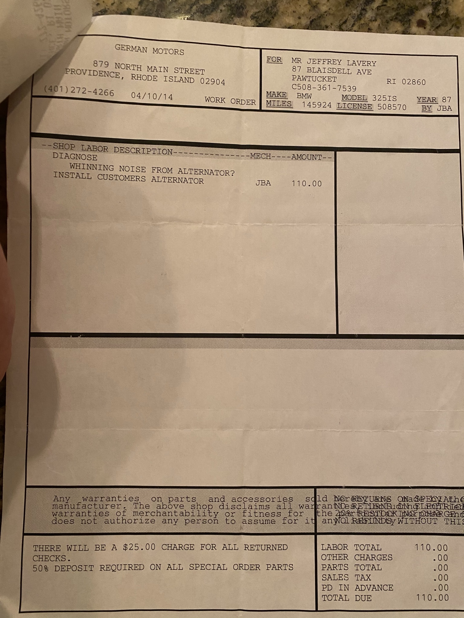 Vehicle 1987 BMW 325is Read more about 1987 BMW 325is Odometer 145,924 Maintenance Date 04/10/2014 Maintenance Summary Alternator began to whine; replacement part installed to avoid an untimely break-down. Maintenance Images