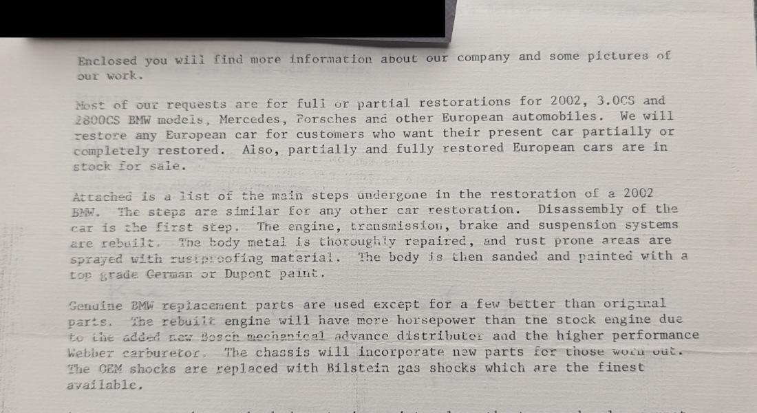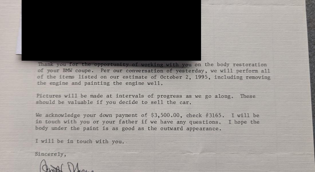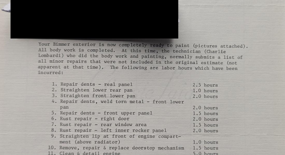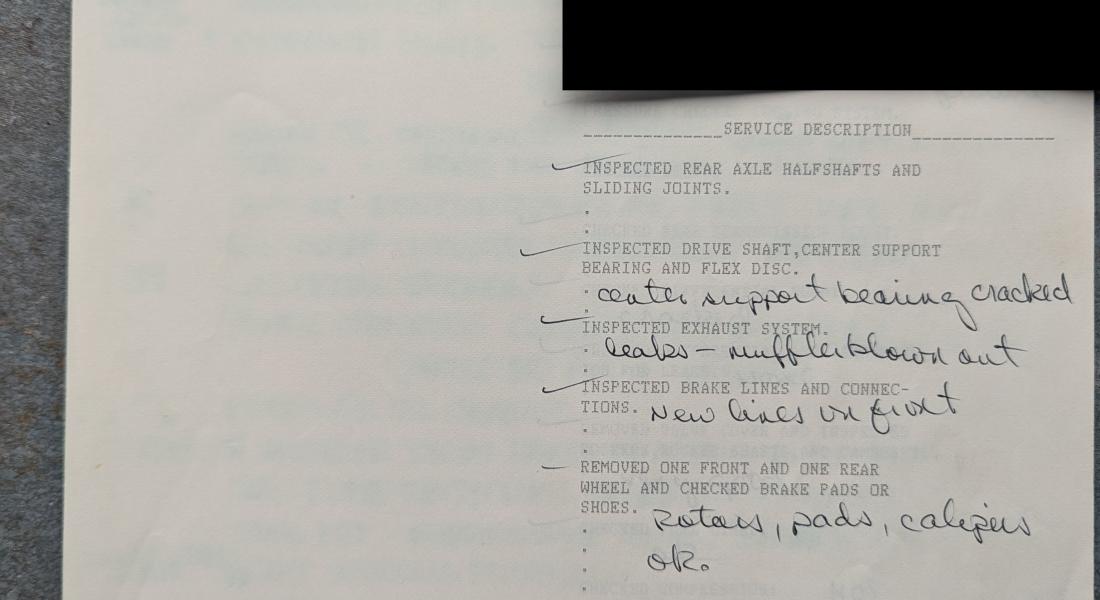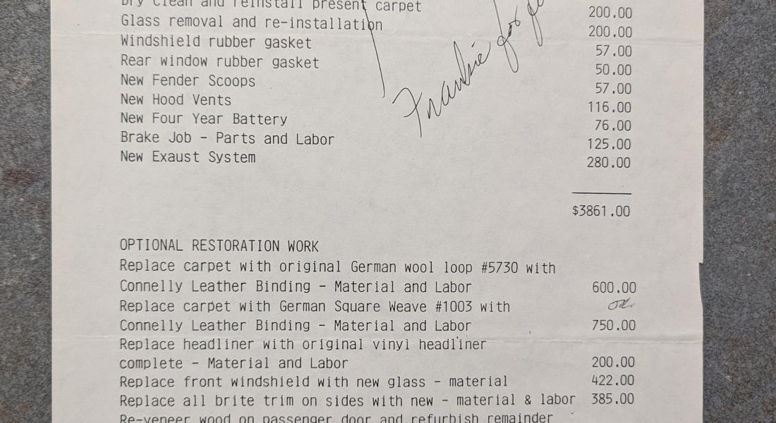 These documents show that the car was previously restored in the late 1980s, with rust repair and refinishing the primary drivers of the refresh.