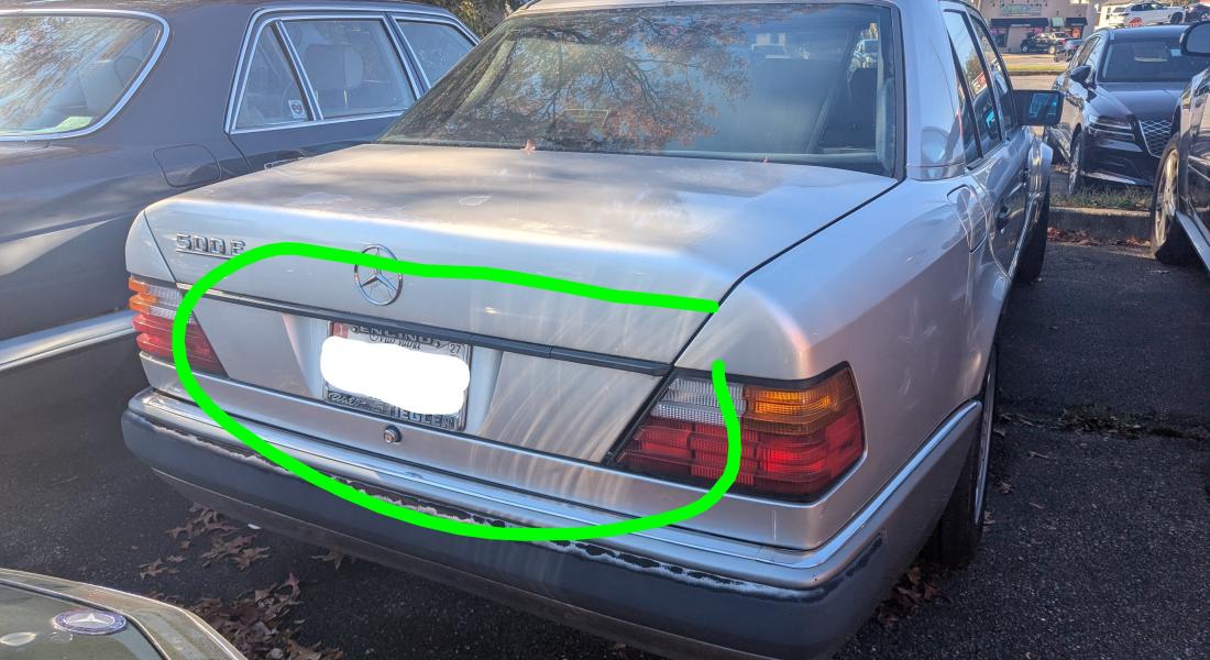 The cause? The broken trunk plinth on the decklid, and some busted hardware behind the rear emblem. Just enough liquid was getting through the tiny gaps caused by the trim piece being broken in three places and the swollen hardware that no longer kept the badge snug against the bodywork.