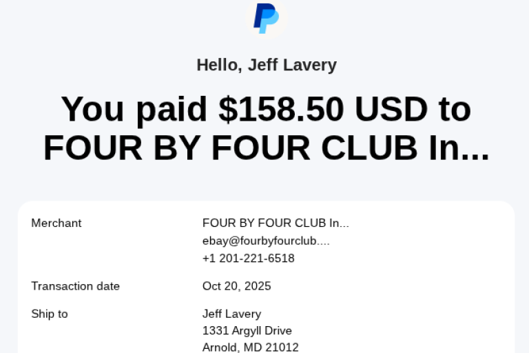 Transport services for the Oris roof box to get from NH to MD |