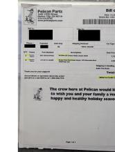 | Tire replacement, alignment, and new battery | Four tires mounted and balanced along with a four-wheel alignment being performed. The owner provided a new battery for replacement at the same time. |