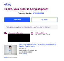 | Base coat spray paint | Misorder of base coat Spectra Red paint for the Trooper; need single stage. |