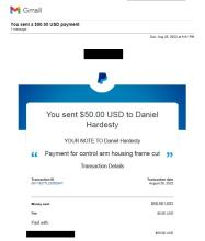 | Control arms and bushings | Jerry Lemond sent up a pair of rust-free control arms and NOS bushings to slap in when the time comes. |
