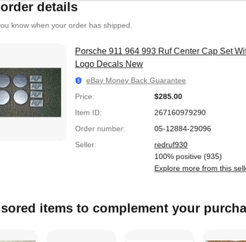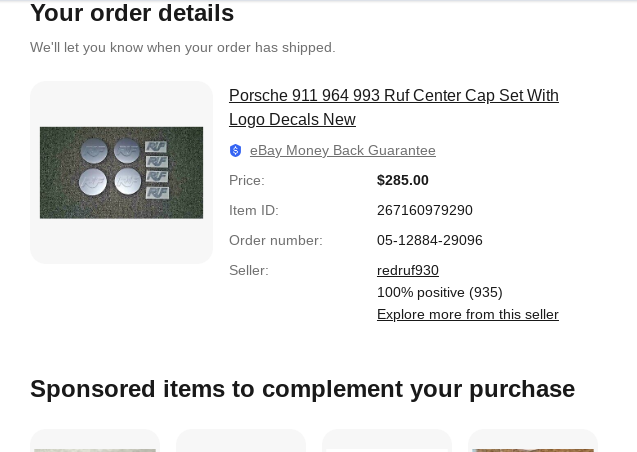 Vehicle 1990 Porsche 911 C4 Cabriolet Date 03/26/2025 Receipt(s) Image Description Authentic RUF center caps for the Speedline wheels.