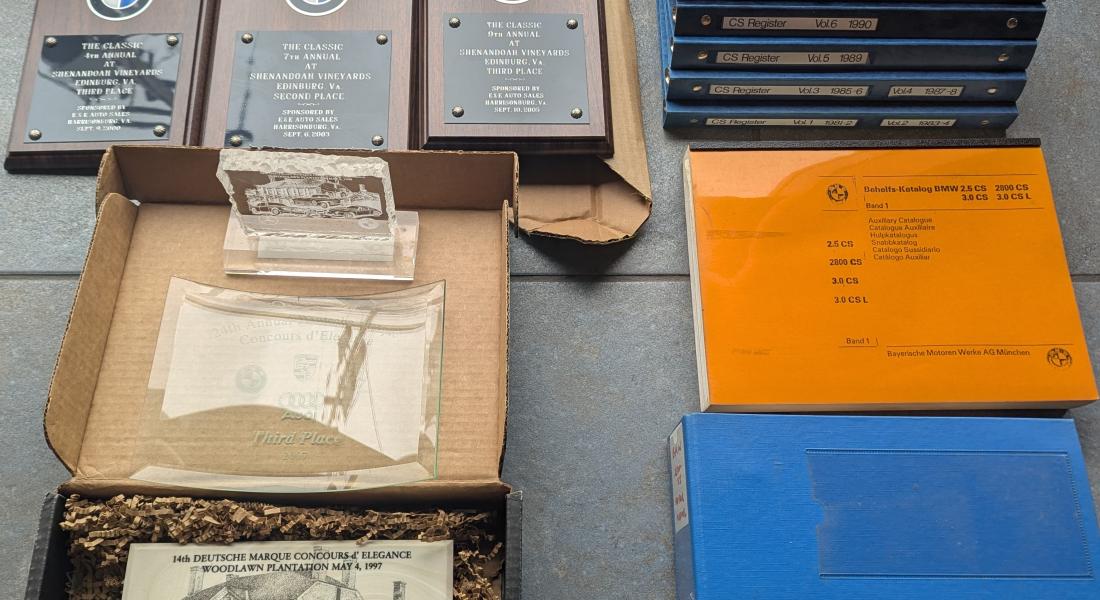 Vehicle 1972 BMW 3.0 CS Coupe Images Background Summary These are various awards the car has won at recognized local shows along with factory manuals and associated marketing materials.