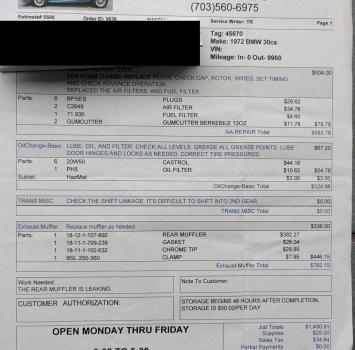 Vehicle 1972 BMW 3.0 CS Coupe Read more about 1972 BMW 3.0 CS Coupe Maintenance Date 06/10/2011 Maintenance Summary OIl change, air filter and fuel filters replacement, rear muffler replacement, set timing Maintenance Images