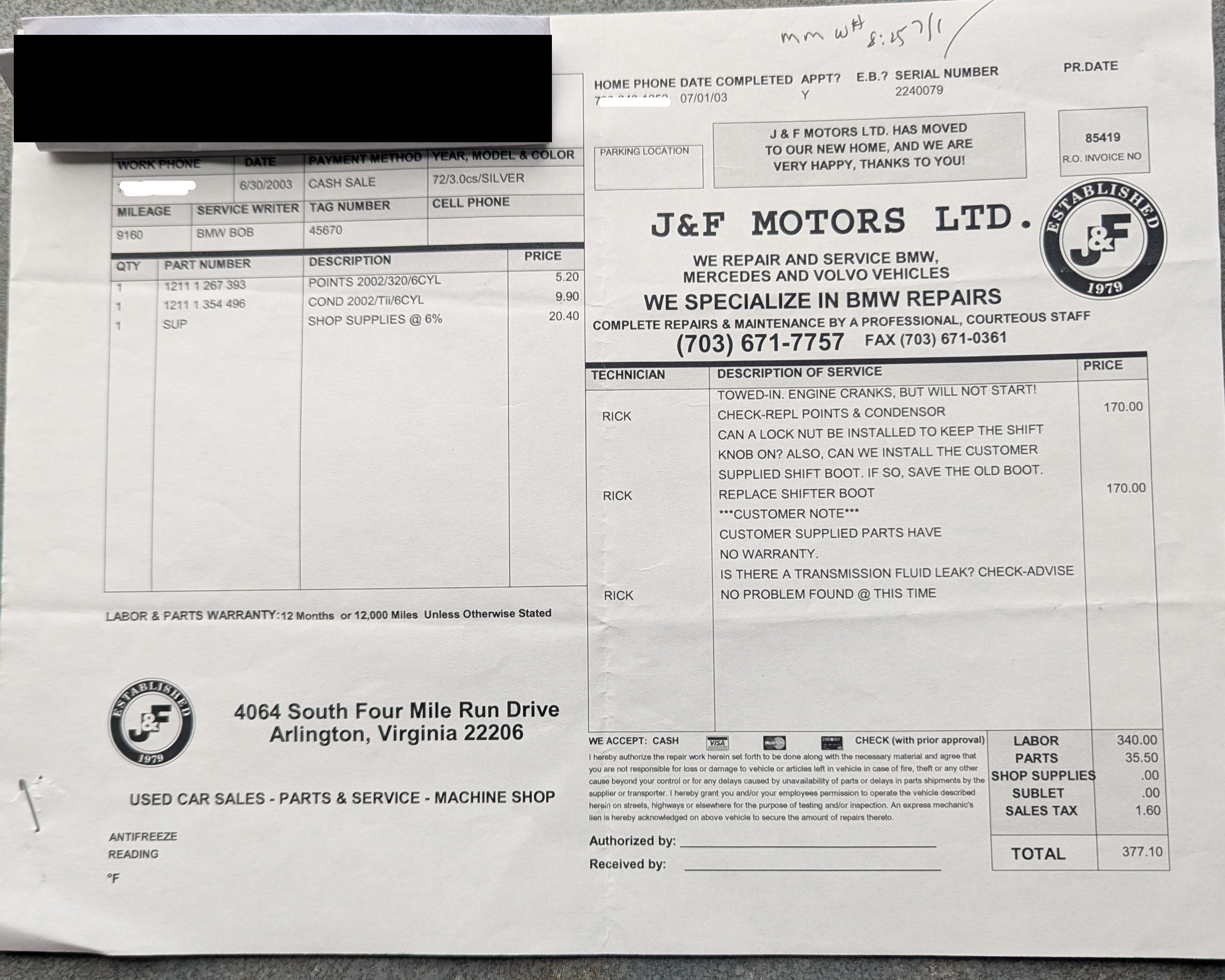 Vehicle 1972 BMW 3.0 CS Coupe Read more about 1972 BMW 3.0 CS Coupe Maintenance Date 07/01/2003 Maintenance Summary Replacement of points and condenser to address no-start issue. Maintenance Images