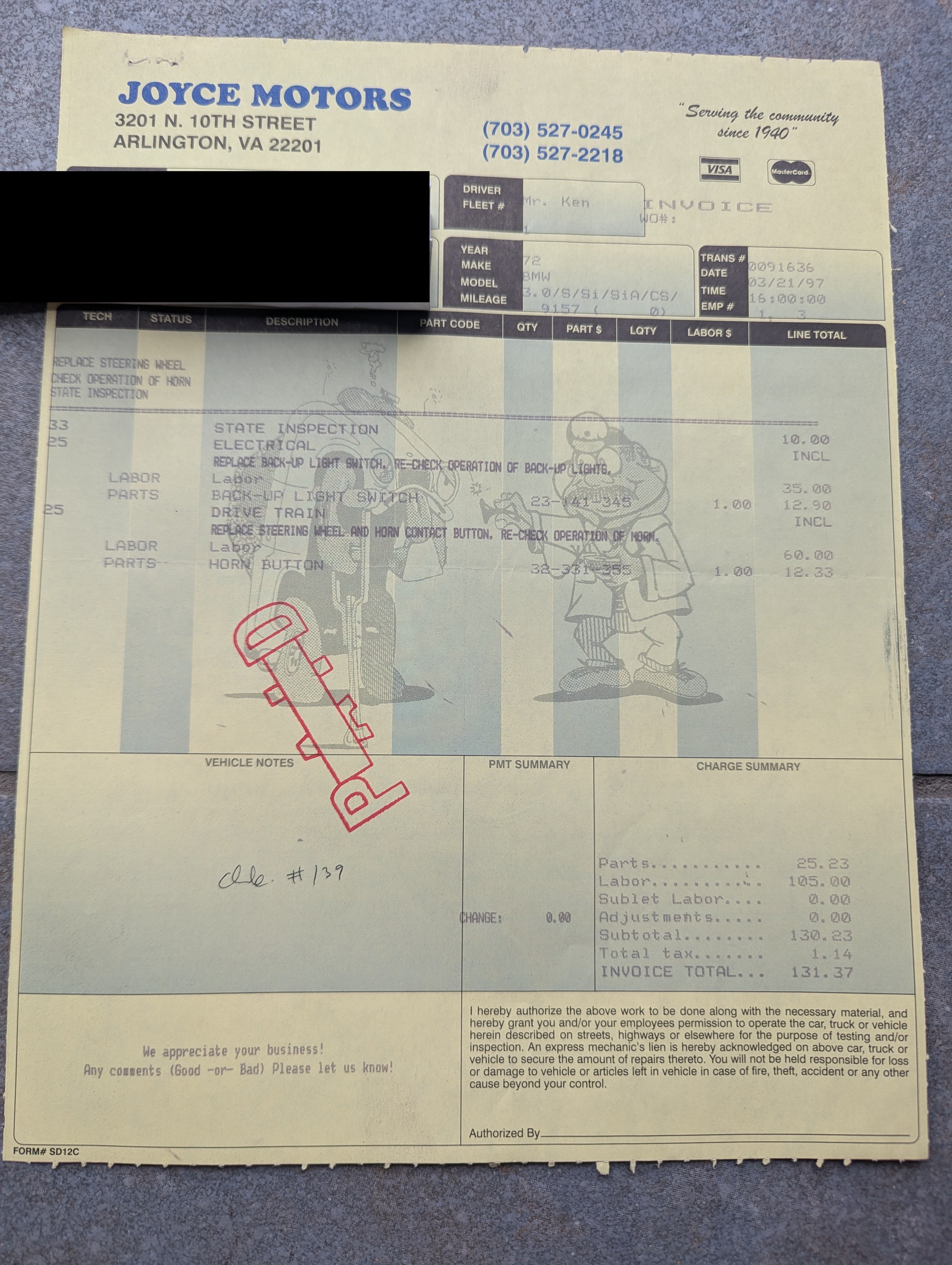 Vehicle 1972 BMW 3.0 CS Coupe Read more about 1972 BMW 3.0 CS Coupe Maintenance Date 03/21/1997 Maintenance Summary State inspection and replacement of backup light switch and steering wheel horn contact button Maintenance Images