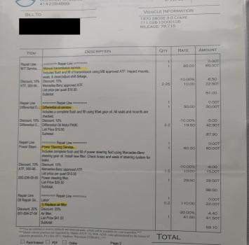 - Transmission flushed and refilled with Mercedes-approved ATF