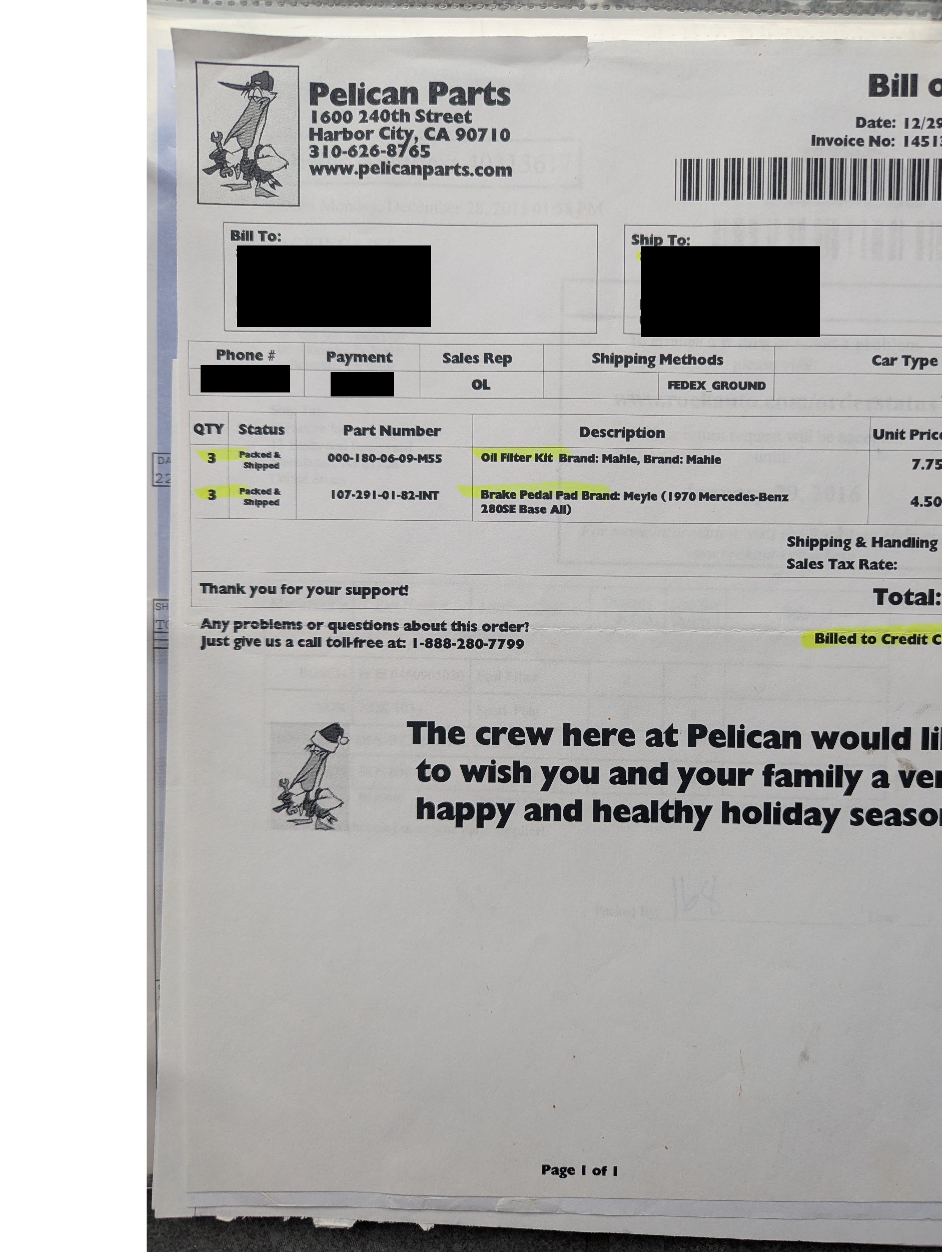 Oil filter and brake pedal pad