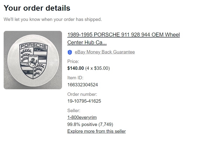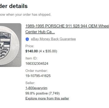 Vehicle 1990 Porsche 911 C4 Cabriolet Date 11/26/2023 Receipt(s) Image Description Centercaps for the OEM D90 wheels