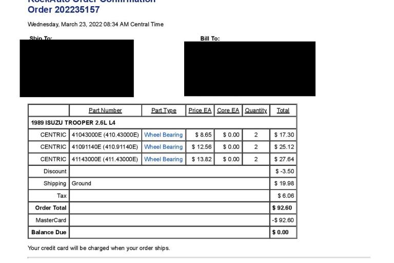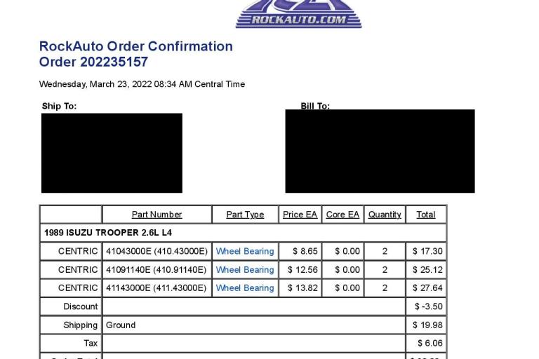 Replacement front wheel bearings |