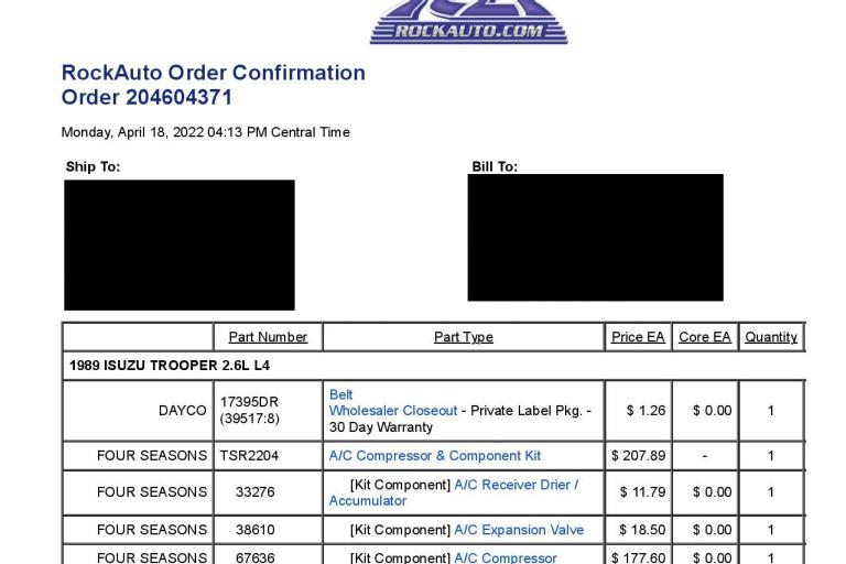 Transmission filter, gasket, and trans mount. A/C compressor and belt. |