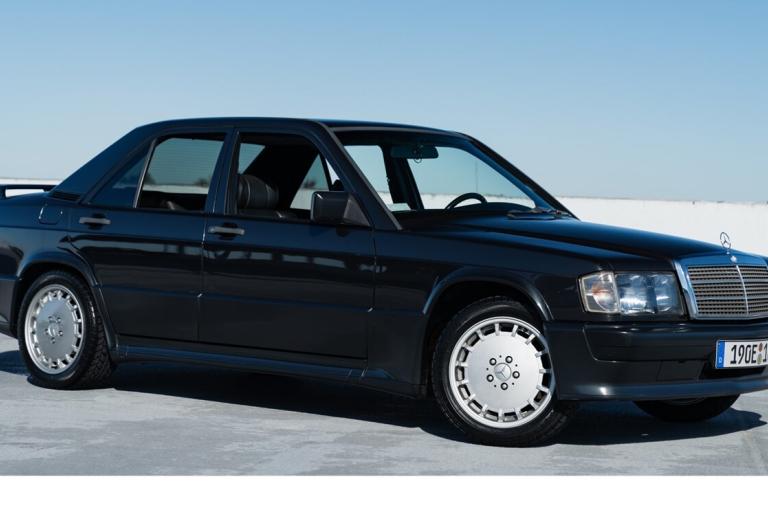 This is a one-owner 190E 2.3-16 in rare Blue-Black Metallic. It shows just over 115,000 miles and has been carefully preserved in mostly stock condition, with alterations limited to European headlights and upsized Gulli wheels.